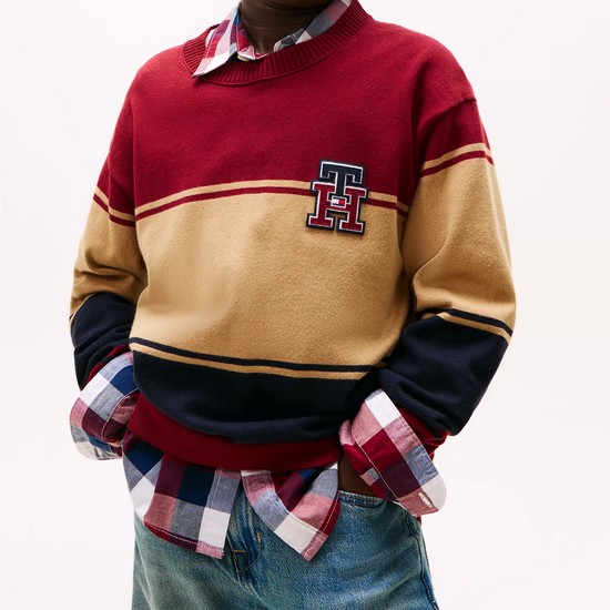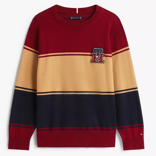 Este suéter Tommy Hilfiger de cuello redondo es la combinación perfecta de estilo clásico y confort. Su diseño a rayas en bloques de color aporta un look moderno y llamativo, ideal para los días frescos.