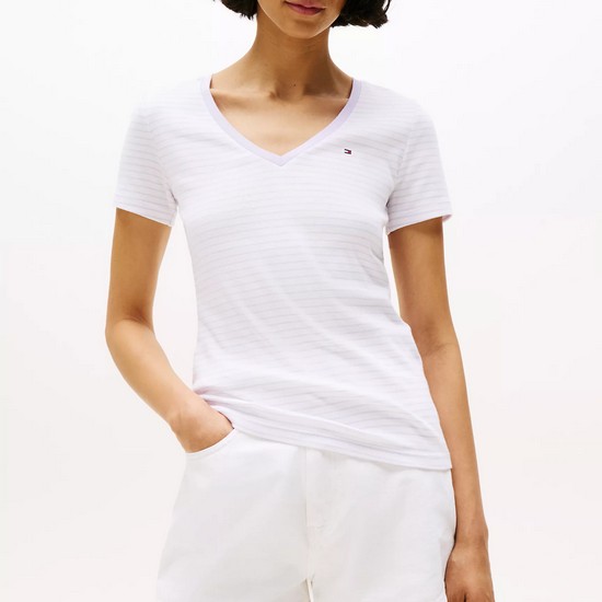 Camiseta Tommy Hilfiger Blanca Rayas Moradas