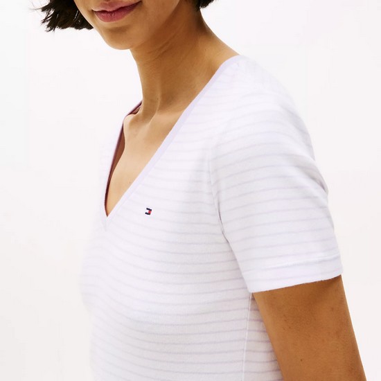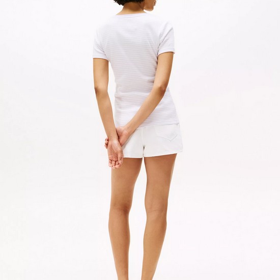 La camiseta Tommy Hilfiger para mujer está confeccionada en algodón suave de gramaje medio, diseñada para adaptarse cómodamente a tu figura y acompañarte todo el día.